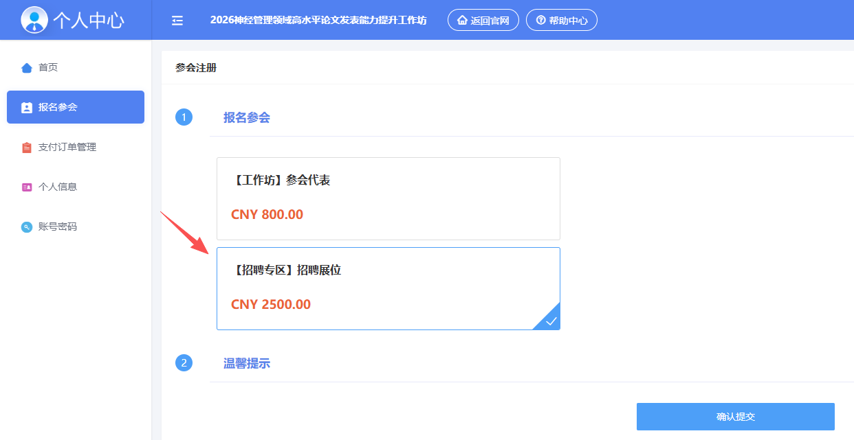 报名参会类型请选择“【招聘专区】招聘展位”